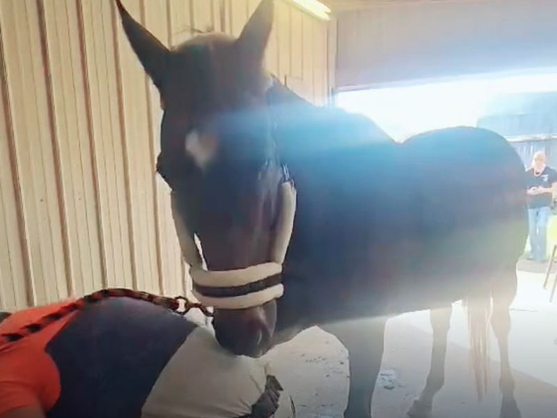 Week by week, Olive continued to improve. She had a professional saddle fit consultation along the way. We received a video of Olive standing quietly for the farrier, and also recently received news that Olive is back under saddle and has a new outlook on life. Her entire personality has changed. Her owner sent us this message: